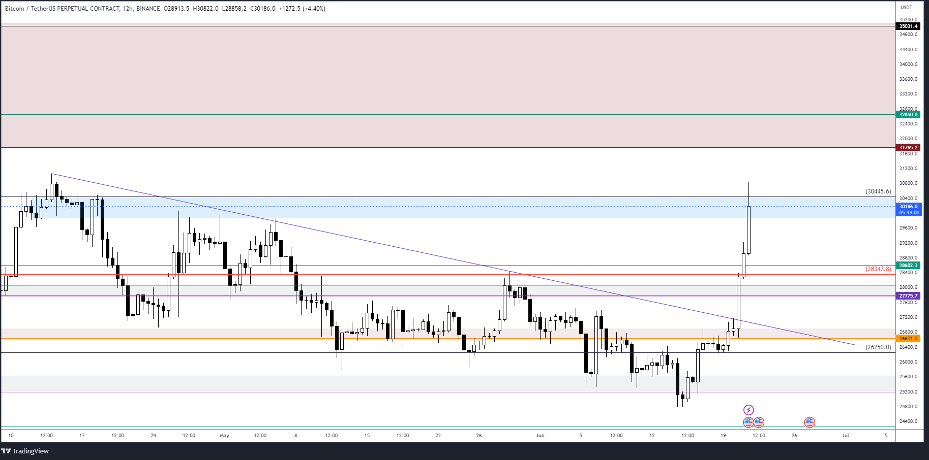 Range high 30445 şu an için tepki aldığımız direnç ve mavi kutu üstü 4 saatlik kapanışlarda ise tekrar desteğe dönüşecektir. Bu seviyenin direnç olarak çalıştığı durumda ise 28602 ve 28061 desteklerinin altına sarkmamasını bekleyeceğim. Yine altında kapanış benim için 26630-26250 bölgesine düşmesi beklentisini doğurur. Gelirse bu bölgeyi long fırsatı olarak değerlendiririm.