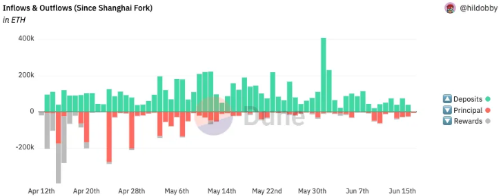 Grafikte de görüldüğü gibi Shangai güncellemesinden bu yana kilitli ETH'lerin kümülatif toplamı sürekli olarak arttı ve 3,58 milyon ek ETH stake edildi. Bu alanda önemli gördüğüm Rpl grafiği: