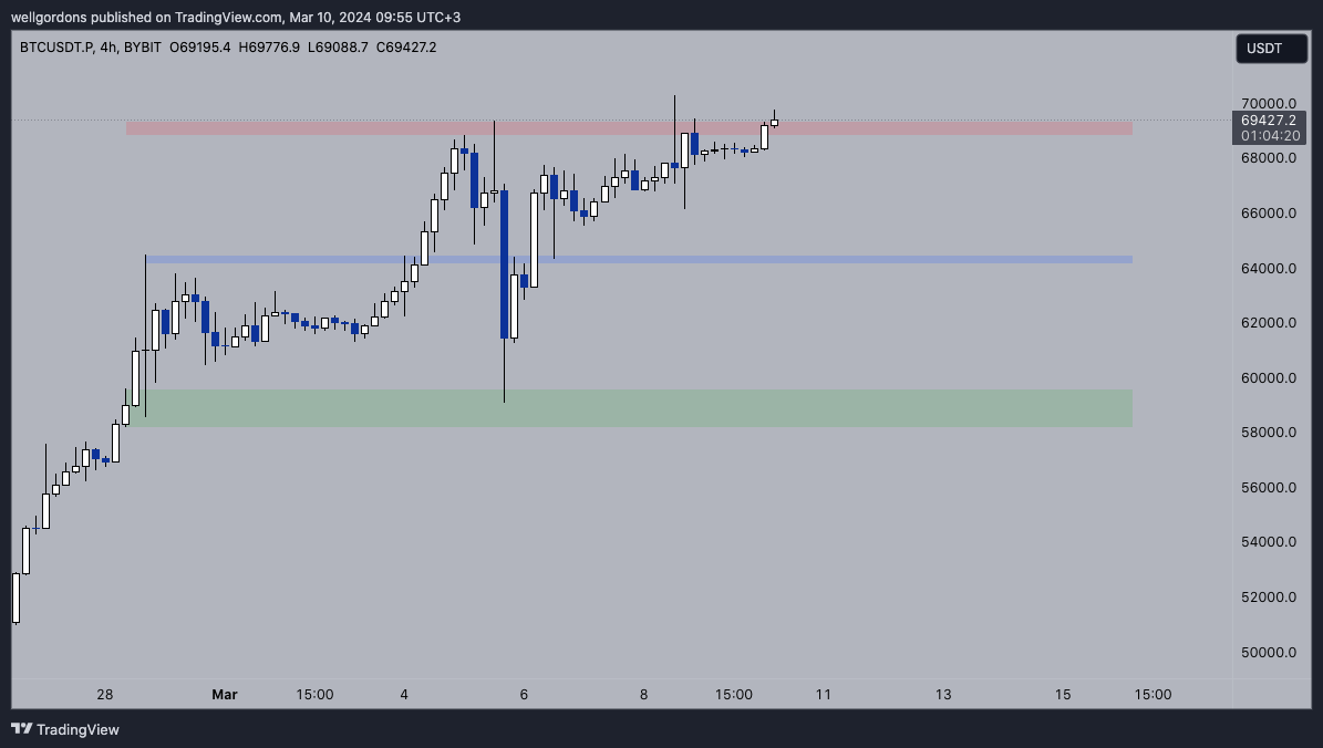 Bitcoin içinde bulunduğumuz hafta all-time high yaparak yeni bir zirveye ulaştı. Gösterdiğimiz direnç kutusu üzerinde kalıcılık sağlarsa, yükselişine devam edebilir.Bu kutunun kaybında ise 60 bin ve 53 bin dolar(mavi kutu) seviyelerine kadar geri çekilmeler yaşayabilir.Geri çekilmeler sonucu alacağı tepki ile yeniden bölge kazanımı görürsek, yeni bir tepe daha yapabileceğini düşünebiliriz