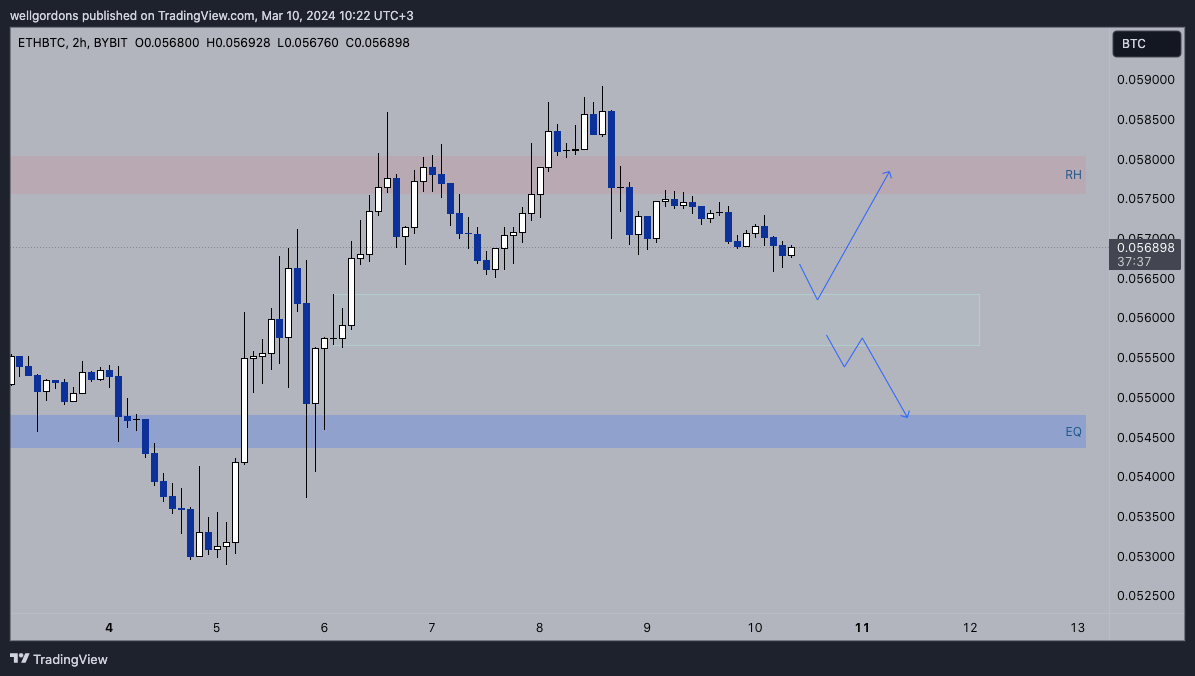 Uzun zamandır bir aralık (range) içerisinde fiyatlanan parite, hafta içerisinde yükseliş yaşayarak range high bölgesine (kırmızı kutu) temasını sağladı. Bu bölgenin ve bölge üzerinde bulunan kararsız mum yapısının kazanımı ile range'i terk etmiş olacaktır. Bu durum bize Ethereum'un Bitcoine göre daha güçlü bir görünüme sahip olacağını gösteriyor. Bu bölgenin kazanımı gerçekleşmez ise en yakın destek alanı olarak range denge bölgesi olan mavi kutuyu test etmek isteyecektir.