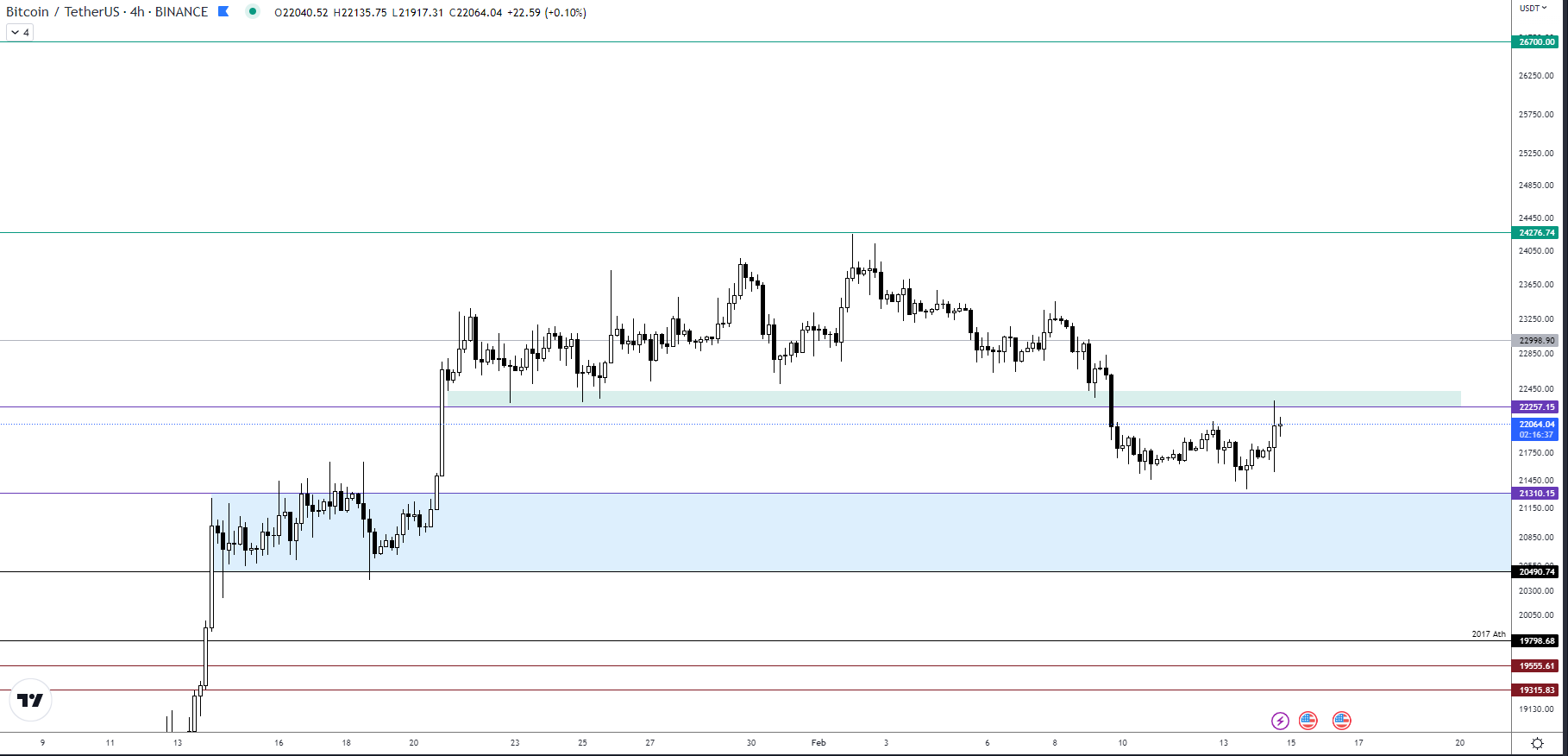 22257 direnci altında kaldığı sürece mavi alanı(21300-20490) test etme ihtimali güçlü. Mavi alan önemli destek bölgesidir. Bu alan içerisinde küçük zaman diliminde yakalanan yükseliş emarelerinde swing long pozisyon alınabilir.