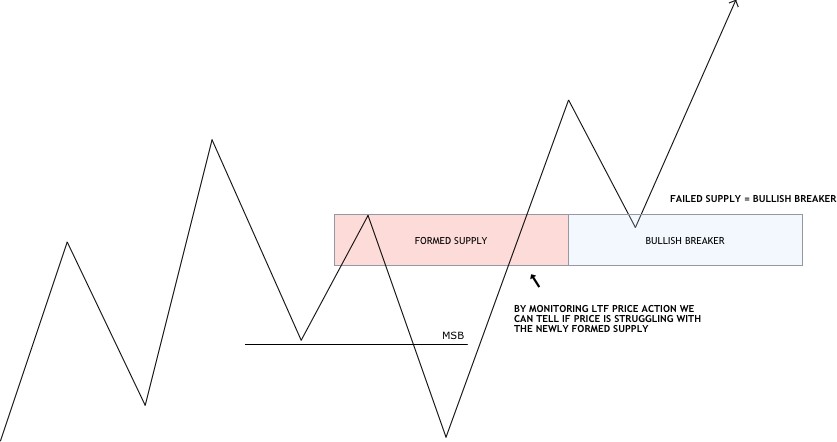 MSB = Pazar Yapısı Kırılması OB = Orderblock