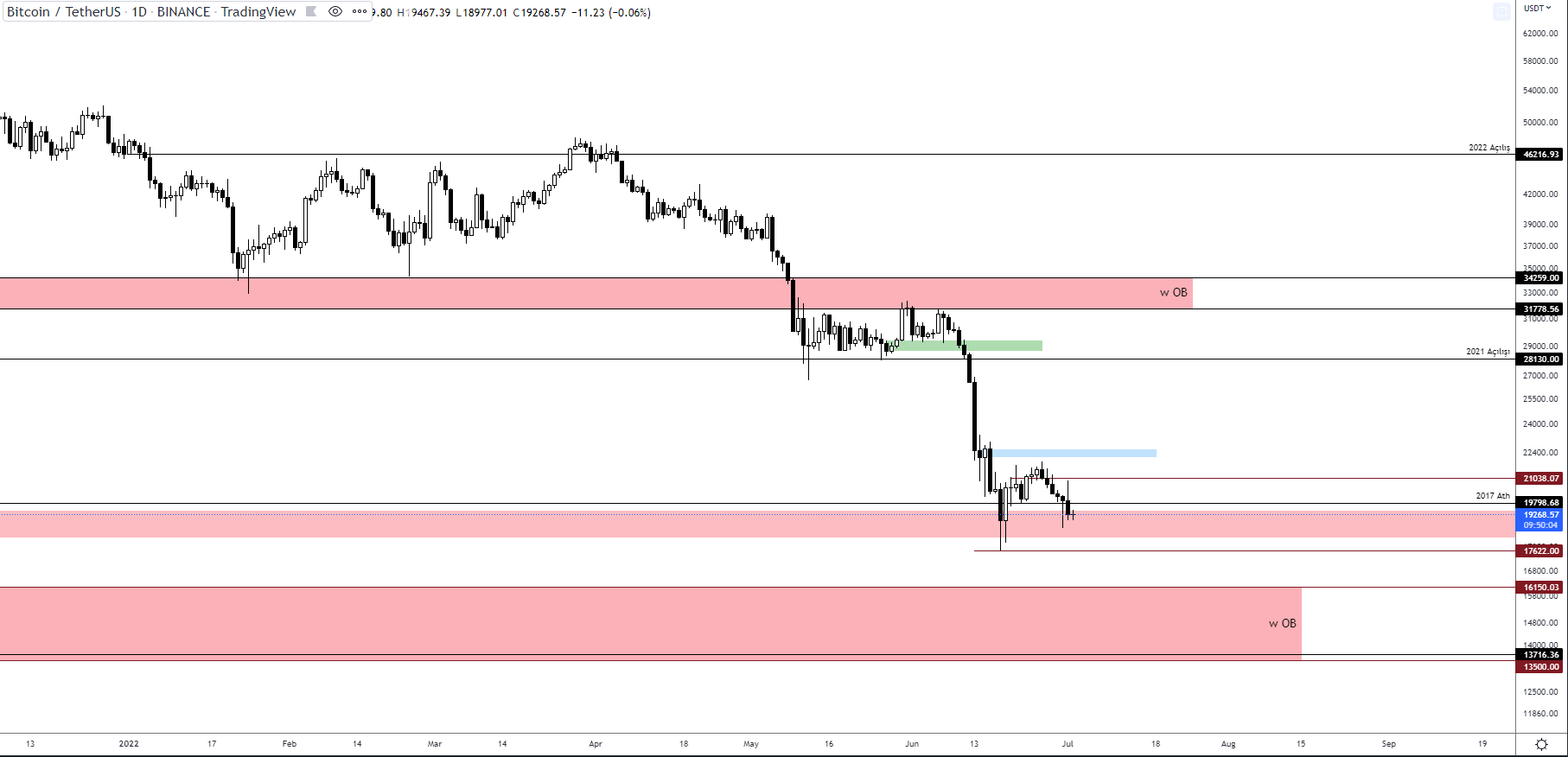 Son dip fiyatın kaybedilmesi ise bir alt bölge yani 16150-13500 aralığına düşmesinin kapısını aralayacaktır.