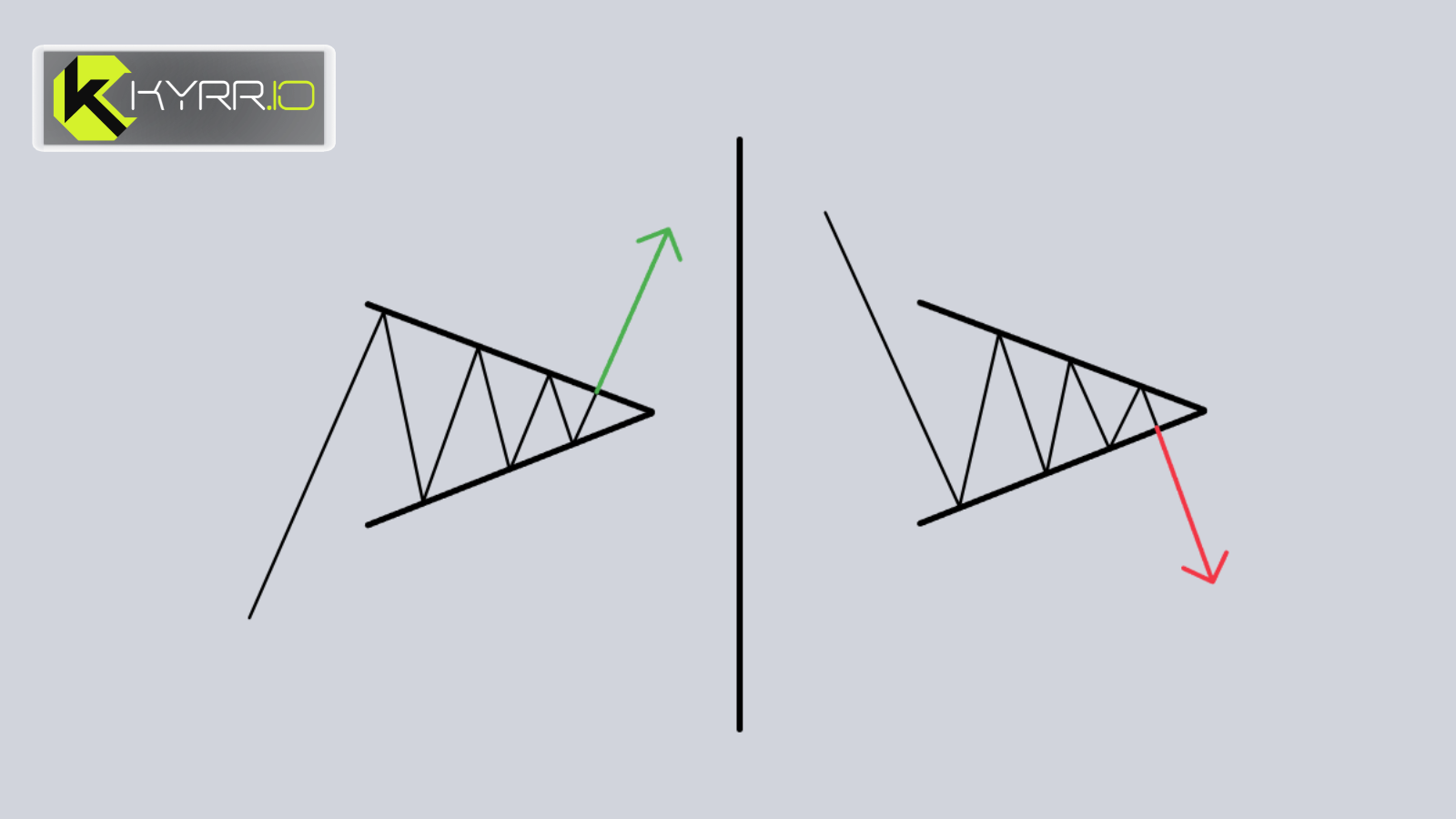 Symmetrical Triangle: Features converging upper and lower boundary lines, which can break in either direction.